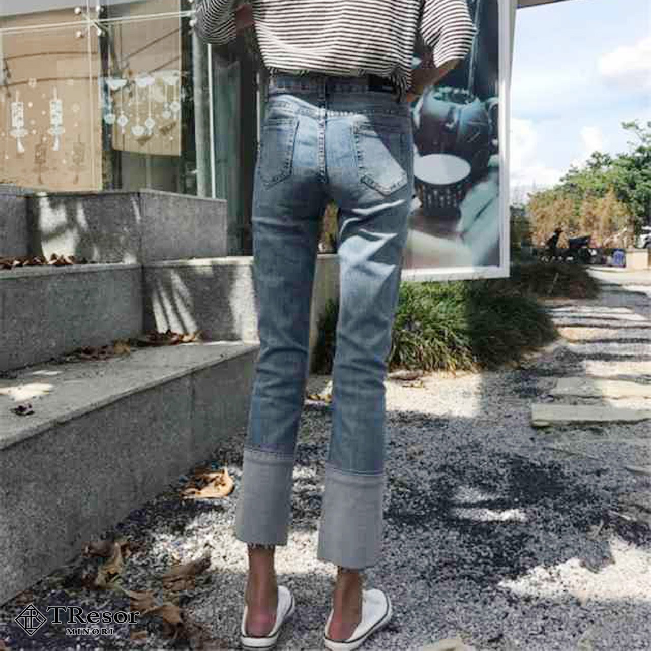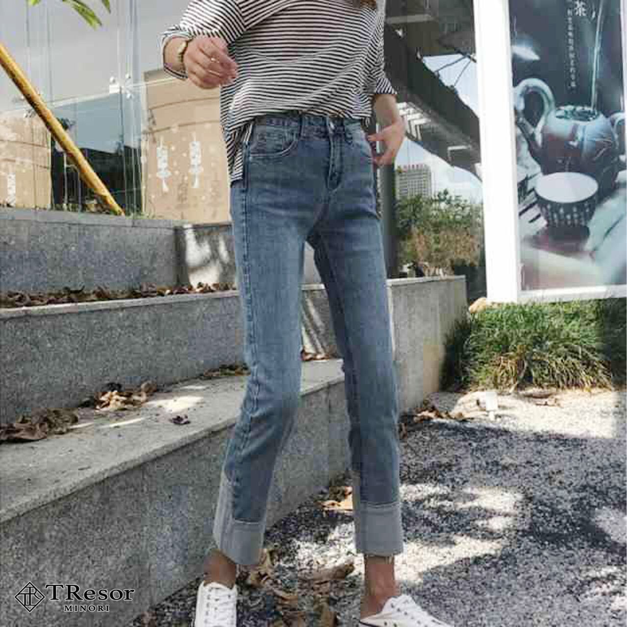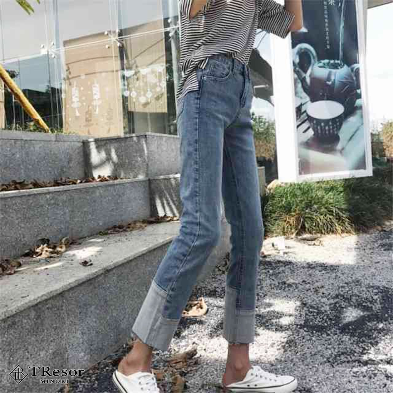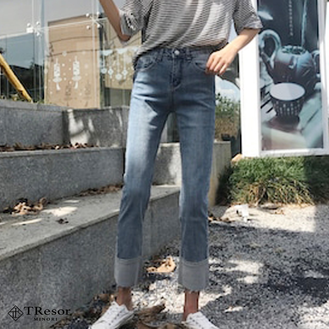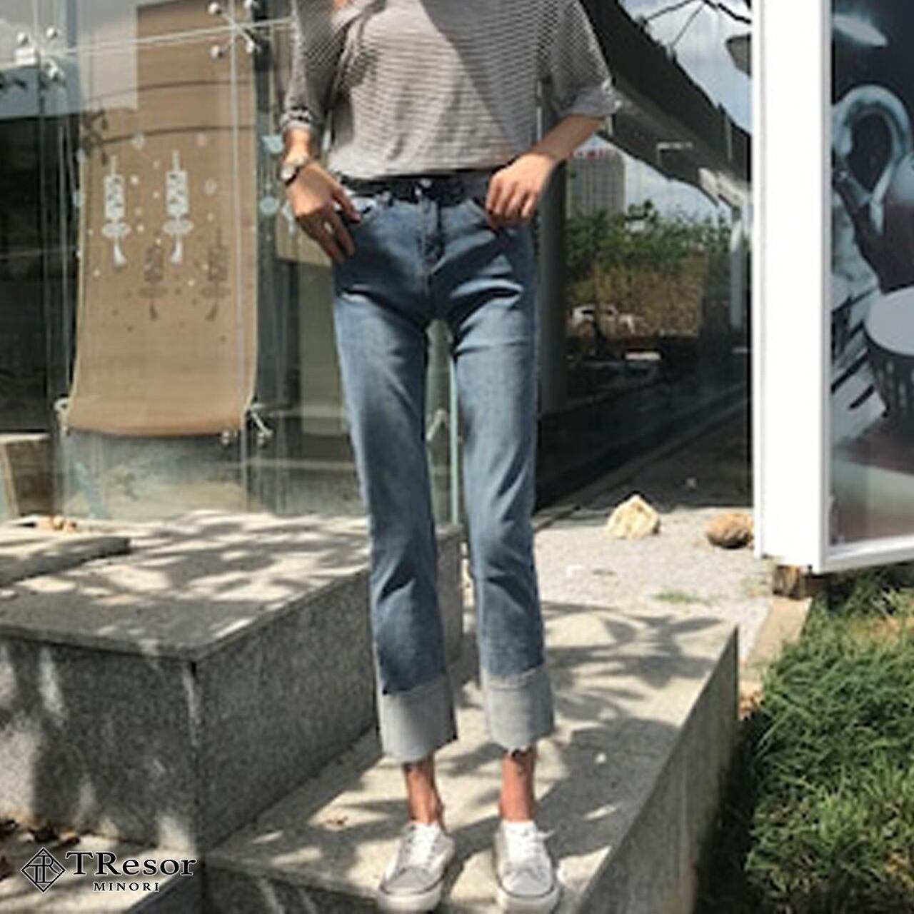 ハイウエストに裾のバイカラーの切り替えデザインが入ったデニムパンツです。