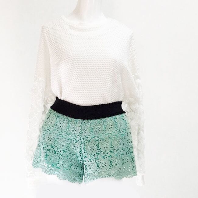 かわいらしい花柄 総レース 刺繍 透け感 抜け感 無地 ショートパンツ