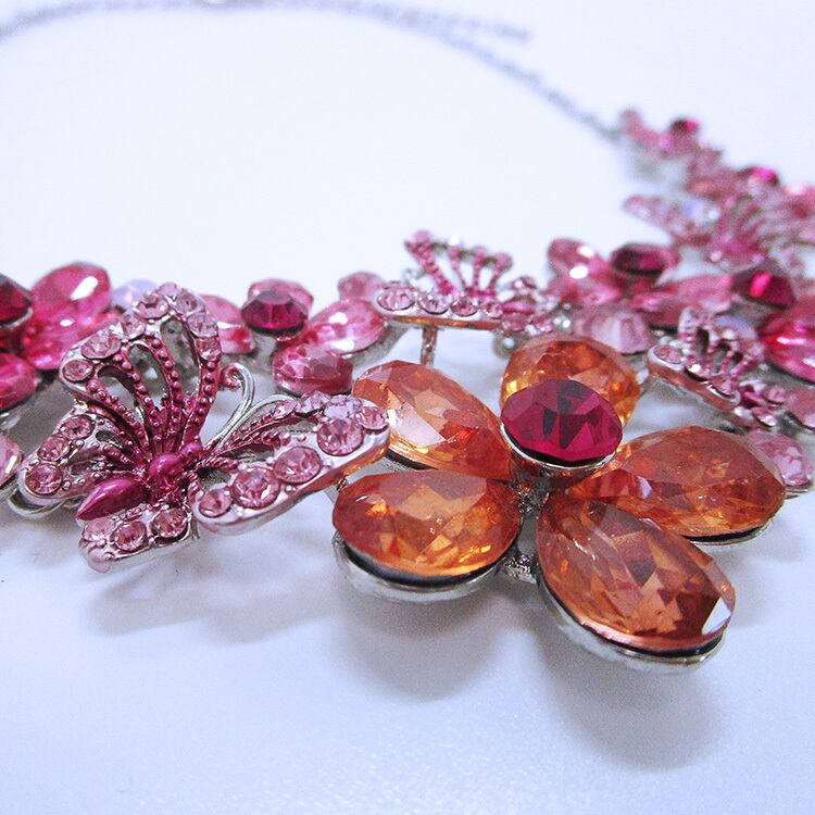 フラワー&バタフライモチーフネックレス・ピアス(両耳)セット【マルチカラー】
