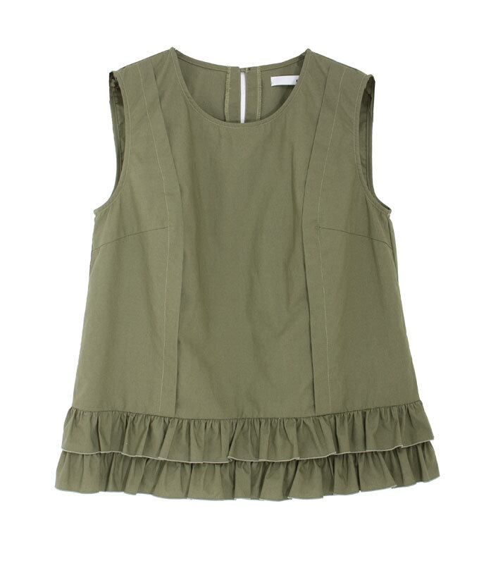 トップスは裾のティアードフリルが可愛いノースリーブカットソー。