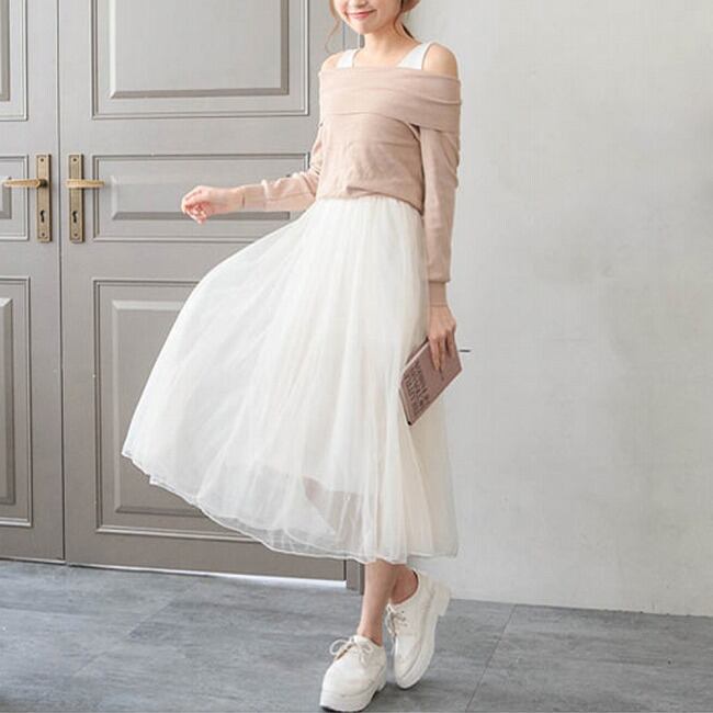 柔らかなシースルーのチュールスカートが女の子らしい雰囲気を演出します。
