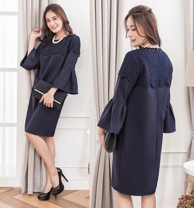 送料無料 長袖 フェミニン フォーマル S〜大きいサイズ 膝丈