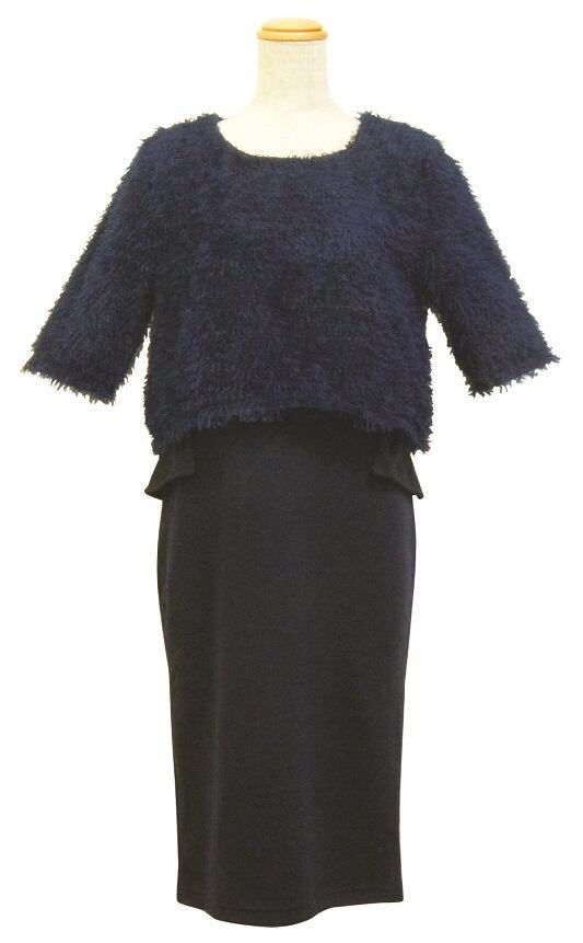 こちらのワンピースはノースリーブのペプラムニットワンピースに五分袖のもこもこボレロが取り付けられたデザイン。