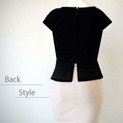 ウエストラインのビジューワークとペプラム、上半身両サイドのブラックの切り替えが女性らしいスタイルを強調し美しく着こなせます。