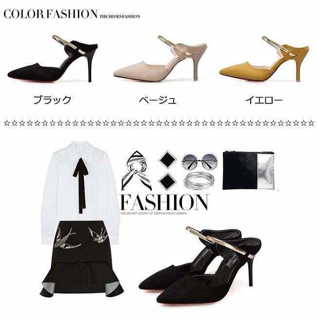 送料無料 新作 ミュール ヒール ミュール 黒 ピンヒール 黒 パンプス 痛くない アンクルストラップ ポインテッドトゥ レディース
