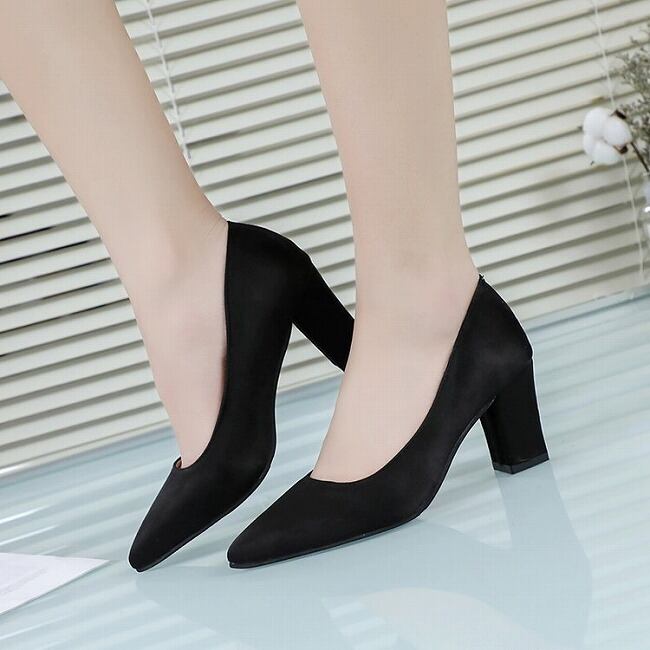 送料無料 新作 チャンキーヒール PUレザースエード調 ハイヒールパンプス シンプル 上品 通勤 結婚式 レディース 痛くない