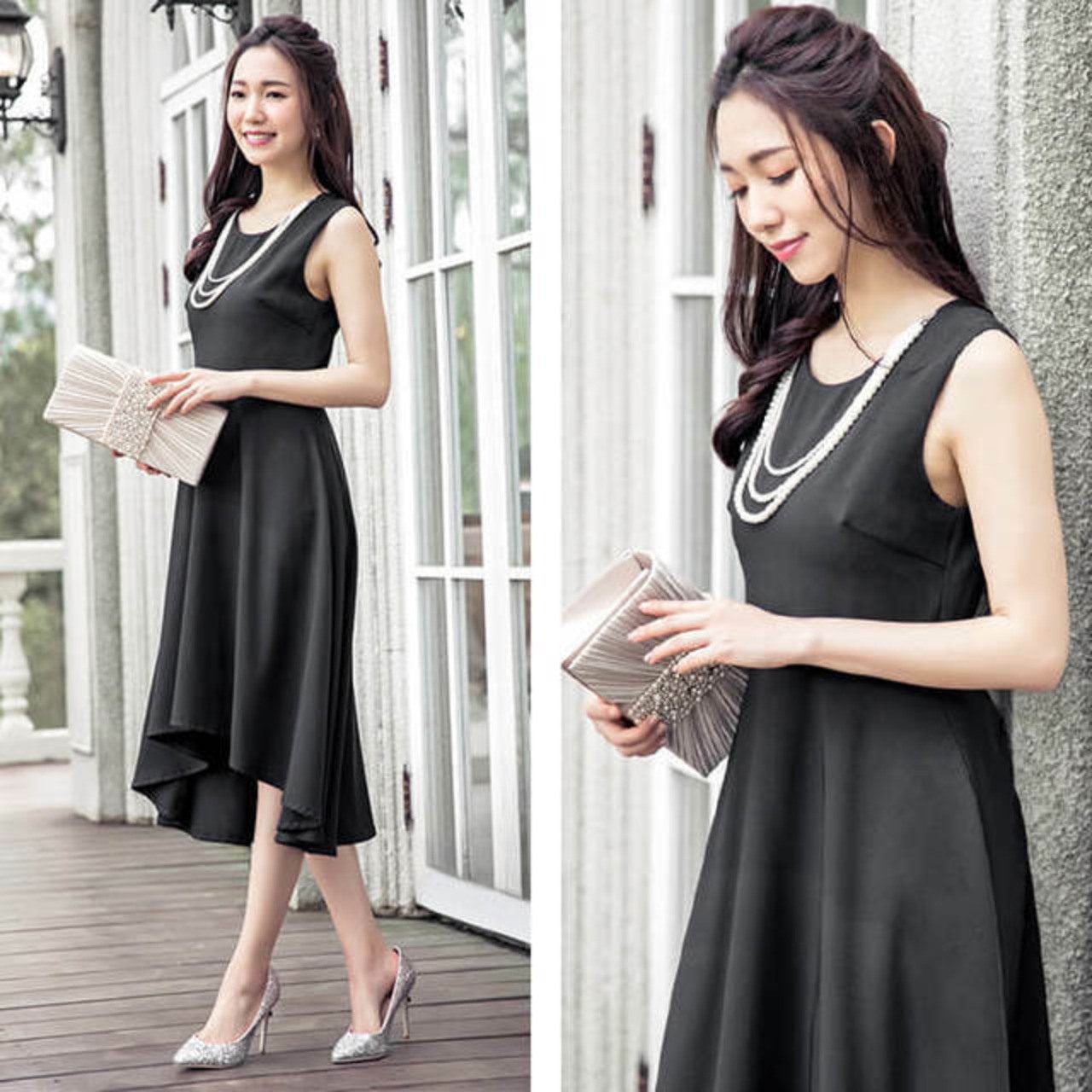 パーティー 結婚式 ワンピース 二次会 大きいサイズ ミディアム 膝下 エレガント フォーマル レディース 演奏会 発表会 同窓会 謝恩会 お呼ばれ 黒 大人可愛い 可愛い かわいい 綺麗 きれい キレイめ 上品 クラシック クラシカル シック シンプル ふんわり