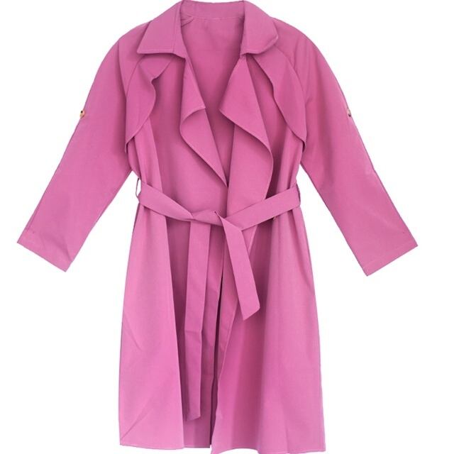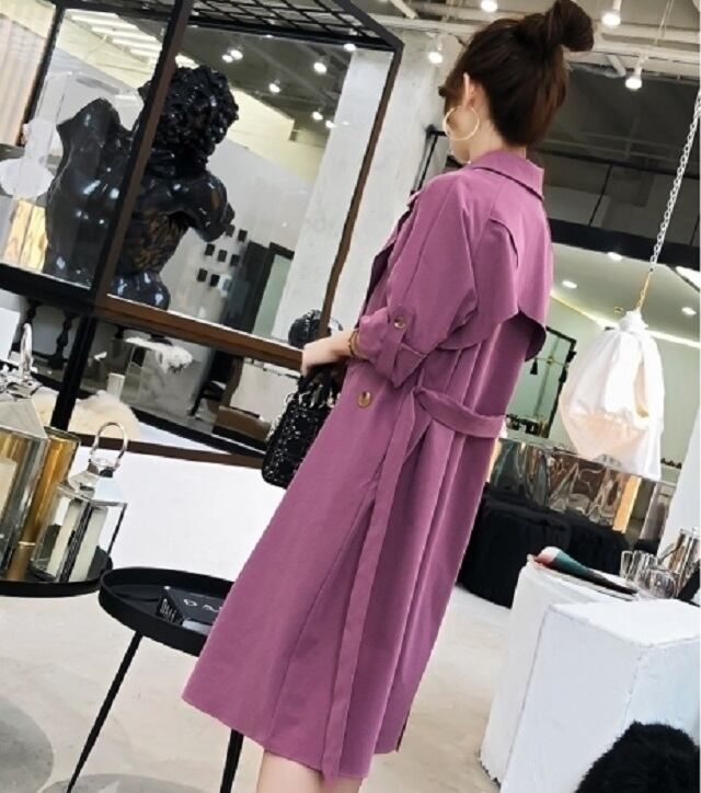 トレンチには珍しいパープルで華やかな場にもぴったりです。