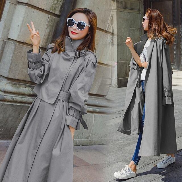 トレンチコート レディース ロング丈 アウター 大きいサイズ ライトアウター ロングコート フォーマル ロング ミディアム ミドル スプリングコート コート ビックサイズ ジャケット ミリタリー 結婚式 パーティー 二次会 上品 オーバーサイズ 無地 ゆったり 長袖