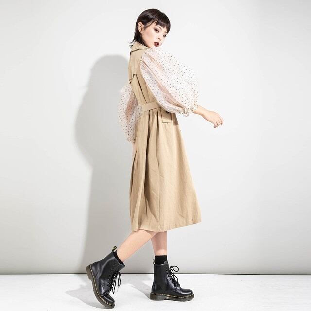 1枚でも印象に残るモード系のかわいいトレンチコートです。
