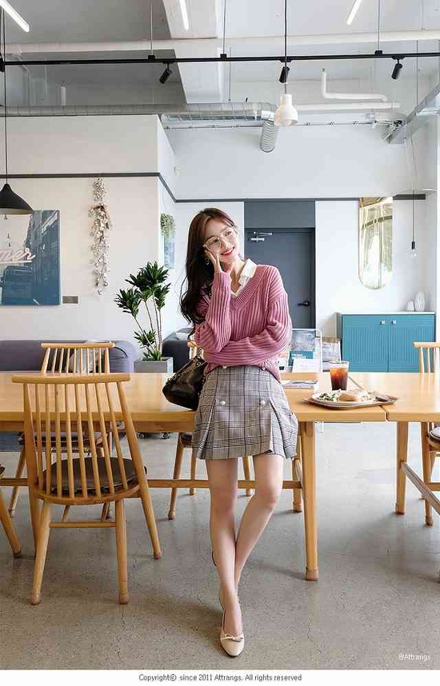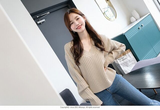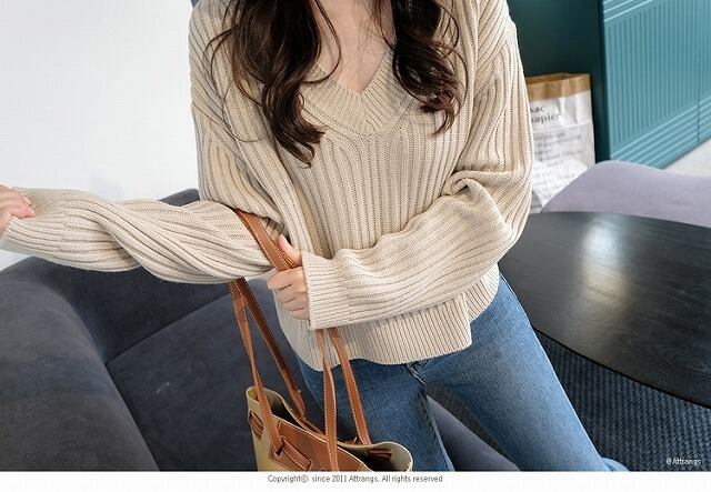 Vネックが首回りをスッキリ見せ、華奢見え効果もありです。