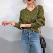 個性的なデザインとVネックがモードな雰囲気を醸し出すニットです。