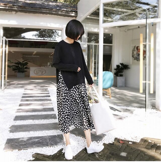 ワンピース レディース ニットワンピース 秋冬 ロングワンピース 長袖 秋 ニット ワンピース 大きいサイズ 大人可愛い 可愛い お洒落 カジュアル 普段使い ビックハート レイヤード ミックスワンピース 甘め