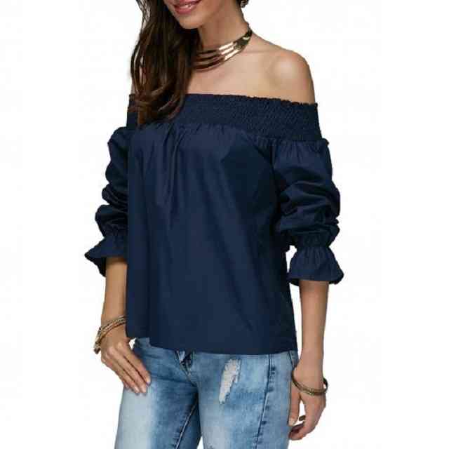 ふんわりとしたオフショルダーのブラウス。