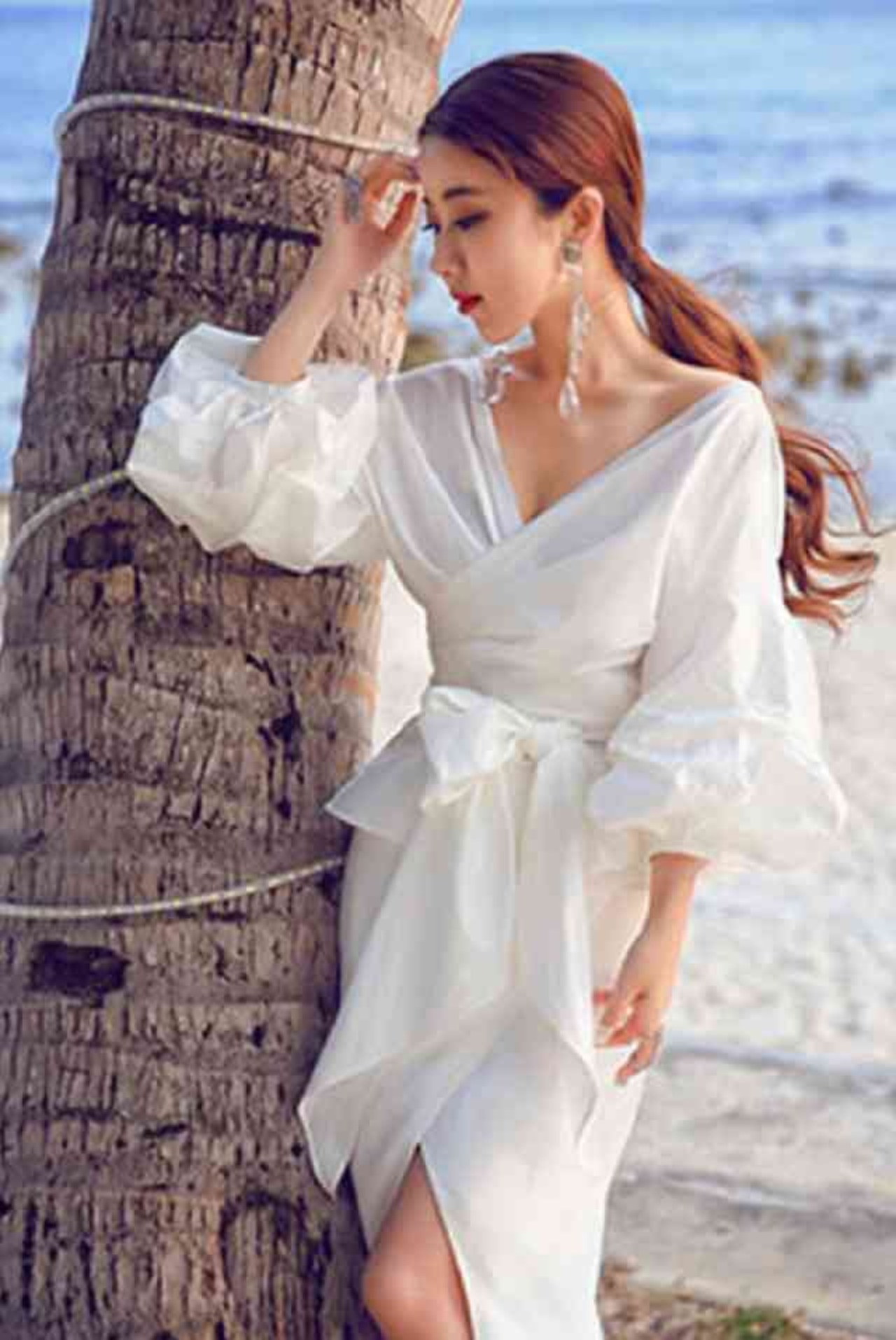 肩や胸元をチラ見せすることですっきり、フェミニンなデザインです。