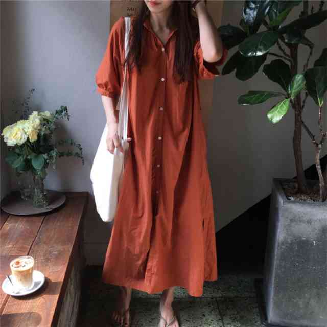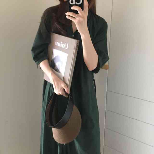 ワンピース レディース 膝丈 ワンピース カジュアル 七分丈 大きいサイズ 春 夏 ワンピ Vネック 体型カバー 袖あり 二の腕カバー ゆったり ゆるい 痩せて見える 20代 30代 40代 50代 シャツワンピース ガウン風 マキシ丈 スタンドカラー 無地 単色 ウエストマーク 2Way 紐