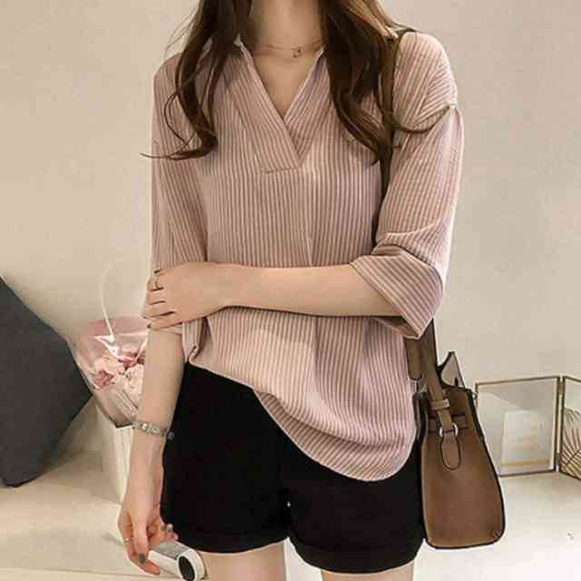 ブラウス レディース 半袖 シャツ 春 夏 春夏 大きいサイズ トップス オフィスカジュアル きれいめ お呼ばれ Vネック 他と被らない 新作 人気 おすすめ 安い SNS映え 体型カバー 袖あり ガーリー ナチュラル カジュアル フェミニン シンプル デート スキッパーカラー 通勤