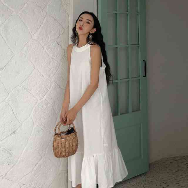 ワンピース レディース 膝丈 ワンピース カジュアル ノースリーブ 大きいサイズ 春 夏 ワンピ フレンチ レトロ フリル ホルタードレス マーメイドロングスカート ほかとかぶらない ふんわり シンプル ホーム ウエア オフ スタイル リゾート ビーチ 休日 20代 30代 40代 無地