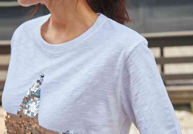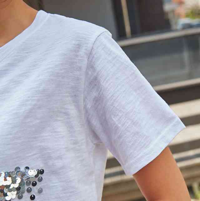 カットソー レディース Tシャツ 半袖 ロンT トップス シンプル 大きいサイズ 春 夏 秋 薄手 クルーネック 星柄 スター シャイニー スパンコール 綿100% コットン カジュアル キラキラ キレイめ 袖あり 二の腕カバー ラウンドネック キレカジ 20代 30代 40代 50代 SNS映え