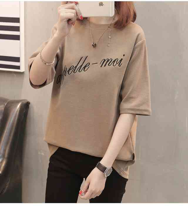 カットソー レディース Tシャツ 半袖 ロンT トップス シンプル 大きいサイズ 春 夏 秋 薄手 クルーネック プルオーバー ロゴ入り ゆったり ゆるい ふんわり ドロップショルダー オーバーサイズ ビックサイズ カジュアル 英字 ラウンドネック 単色 五分袖 ディリーユース OL
