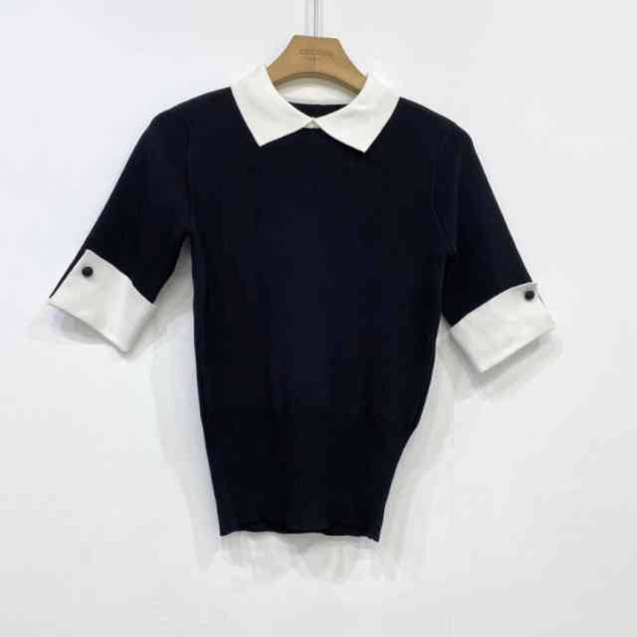 バイカラー配色で、スリムフィット感のあるお洒落な印象のトップスです。
