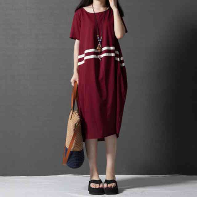 ワンピース レディース 膝丈 ワンピース カジュアル 半袖 大きいサイズ 春 夏 ワンピ ラウンドネック ロング丈 ゆったり ゆるい シンプル 体型カバー 10代 20代 30代 40代 50代 袖あり バイカラー ボーダー柄 らくちん Uネック ライン コクーンワンピース ミモレ ミディアム