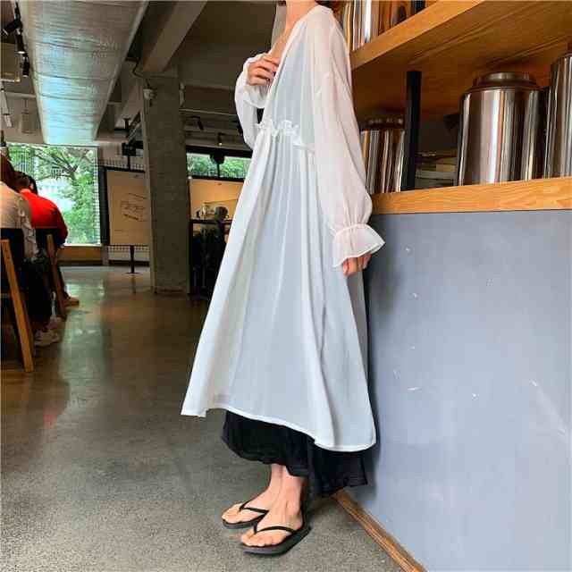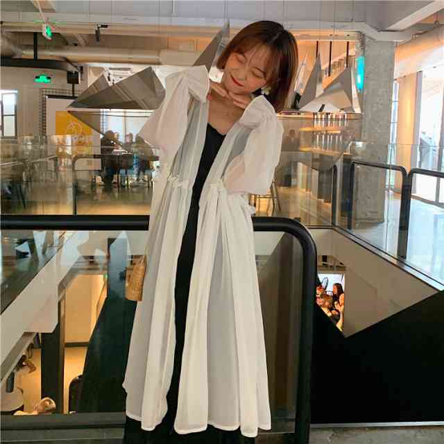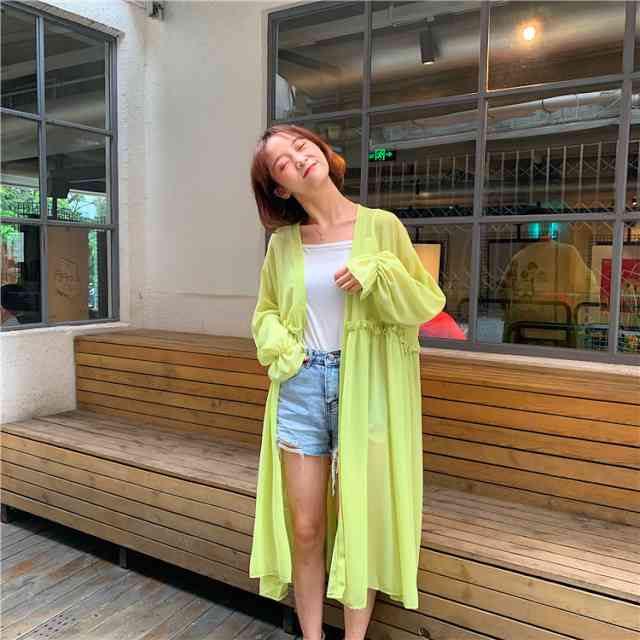 UVカット カーディガン レディース 薄手 UVカーデ ミディアムカーディガン 大きいサイズ レディース 羽織り UV対策 紫外線 対策 冷房対策 日焼け トップス 春 夏 透け感 シースルー 体型カバー ゆったり ゆるい フリル ベルスリーブ 長袖 ウエストマーク 襟なし ボタンなし
