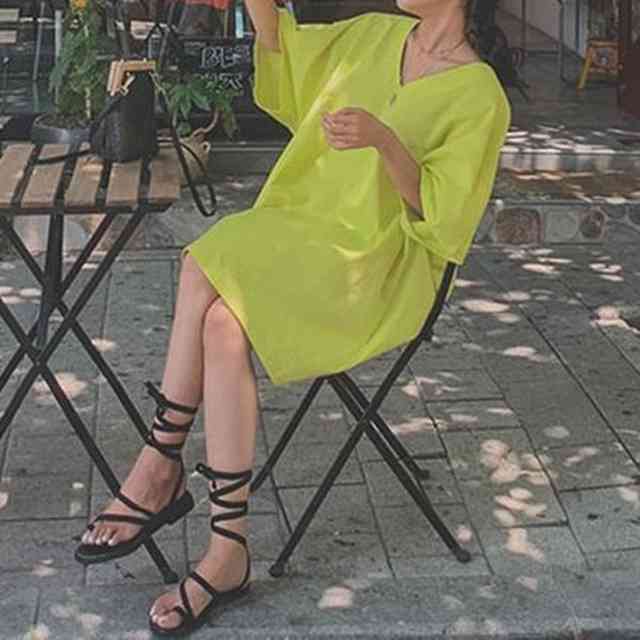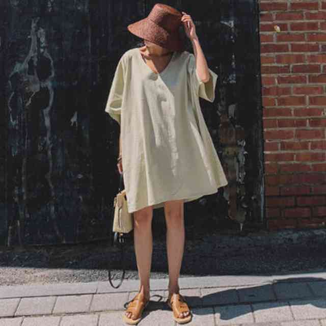 ワンピース レディース 膝丈 ワンピース カジュアル 半袖 大きいサイズ 春 夏 ワンピ Aライン ミドル丈 コットン Vネック リネン フェミニン ゴージャス エレガント クラシック クラシカル モノトーン ガーリー ナチュラル シック ゆったり ゆるい 痩せて見える 他と被らない