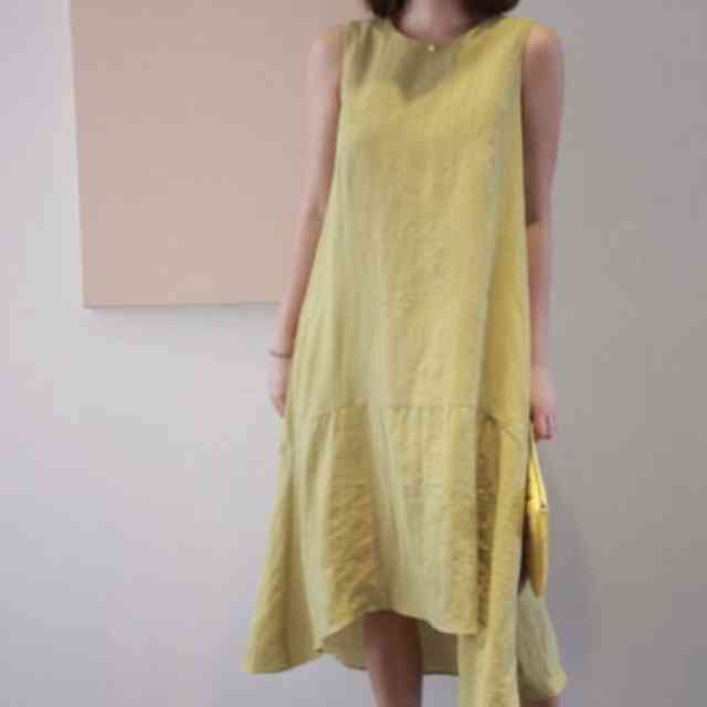 ワンピース レディース 膝丈 ワンピース カジュアル 袖なし 大きいサイズ 春 夏 ワンピ アシンメトリー ミドル丈 コットン リネン 単色 フェミニン エレガント クラシック クラシカル モノトーン ガーリー ナチュラル ゆったり ゆるい 痩せて見える スレンダー 他と被らない
