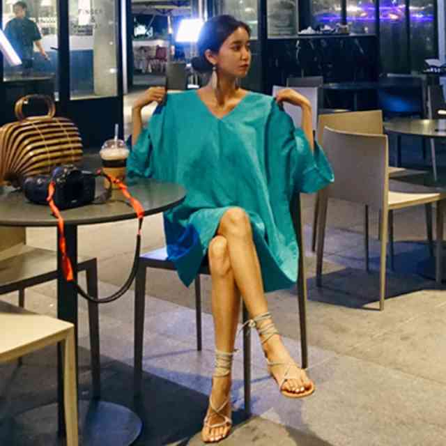 ワンピース レディース 膝丈 ワンピース カジュアル 五分袖 大きいサイズ 春 夏 ワンピ ビッグスイングタイプ ミドル丈 コットン リネン Vネック フェミニン クラシック クラシカル ナチュラル シック ゆったり ゆるい 痩せて見える スレンダー 他と被らない お呼ばれ デート