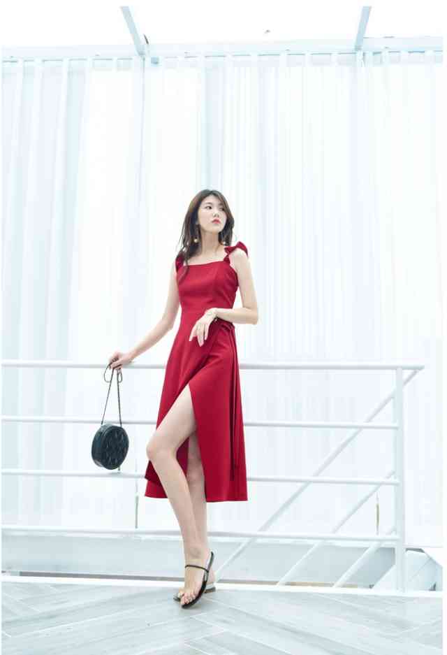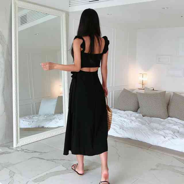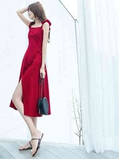 ワンピース レディース 膝丈 ワンピース カジュアル ノースリーブ 大きいサイズ 春 夏 ワンピ ラウンドネック フリル 背中開き リボン シンプル スリット 巻きスカート ロング丈 ウエストゴム 他と被らない 美脚効果 足長 スクエアネック ストラップワンピース 無地 Aライン