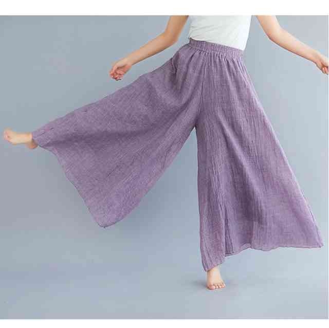 ワイドパンツ パンツ レディース ガウチョパンツ ボトムス ゆったり ズボン ウエストゴム 楽ちん おしゃれロングパンツ レディース 涼しい 美足 美尻 着痩せ 体型カバー ゆるい 痩せて見える ノンストレス リラックス スカーチョ 無地 エアリー シワ加工 マキシ カラバリ豊富