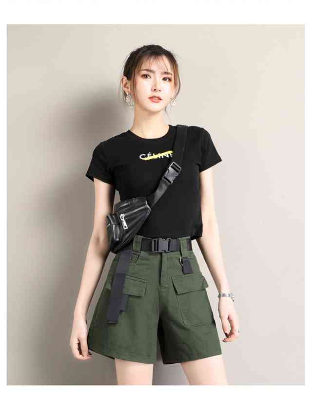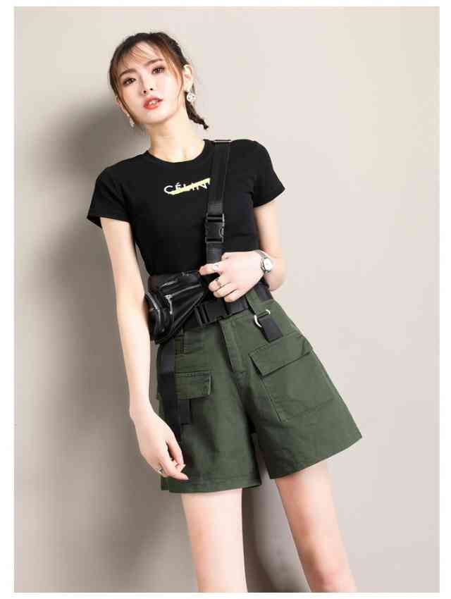 ショートパンツ レディース ハーフパンツ 大きいサイズ サマーパンツ ゆったり ワイドパンツ 夏 半ズボン 短パン ストレッチ ボトムス リラックス ポリエステル 涼しい 美足 デニム 旅行 リゾート プール 海 ハイウエスト 美脚効果 脚長効果 ポケット ベルト ミリタリー