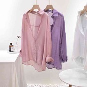 柔らかな手触りで透け感のある素材がお洒落でトレンド感のあるシャツです。
