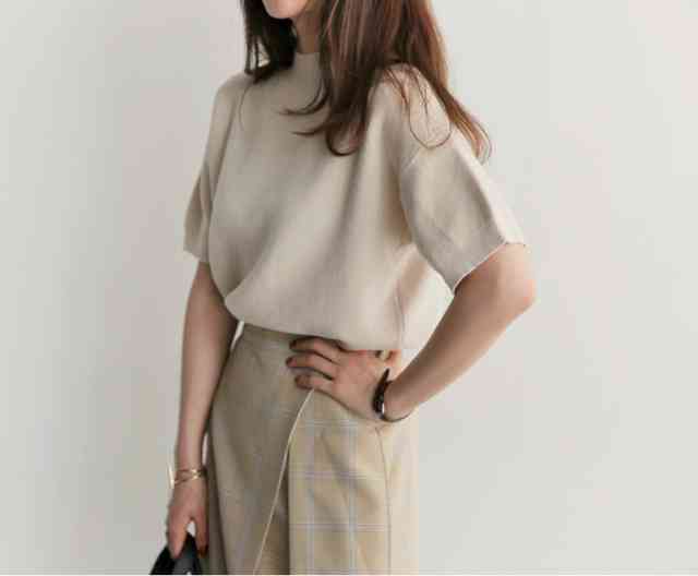 上品な印象になるボトルネックは首元を華奢に見せてくれる効果があります。