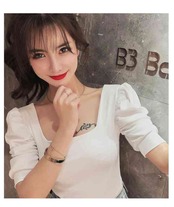 カットソー レディース Tシャツ 半袖 ロンT トップス シンプル 大きいサイズ 春 夏 秋 薄手 きれいめ スクエアネック パフスリーブ ボリューム袖 タイト 華奢見え セクシー フェミニン 無地 旅行 リゾート お出かけ デート 10代 20代 30代 単色 リブ 通勤 普段着 キレカジ