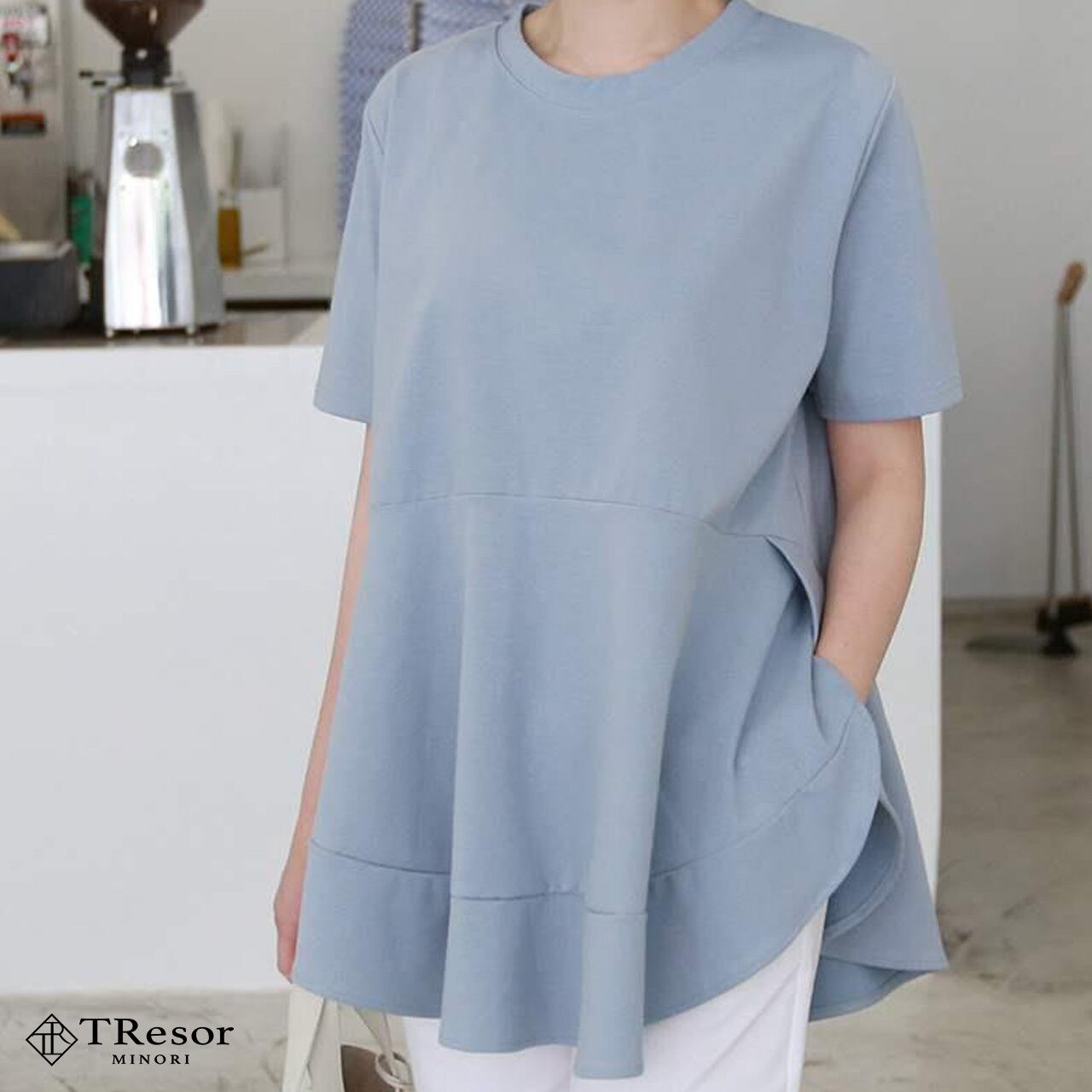 ふんわりとした裾は気になるウエスト周りをカバーしてくれます。