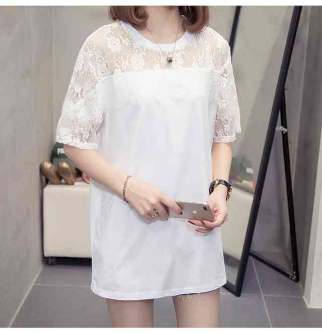 カットソー レディース トップス Tシャツ 半袖 デザイン シンプル 大きいサイズ 春 夏 秋 薄手 花柄レース シースルー 透け 爽やか 涼し気 ゆったり ゆるい 体型カバー 二の腕カバー 袖あり キレイめ 切り替え クルーネック 単色 異素材Mix 20代 30代 40代 50代 ミセス ママ