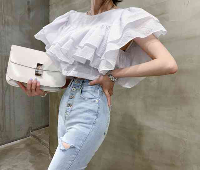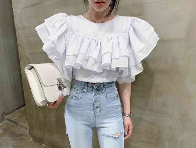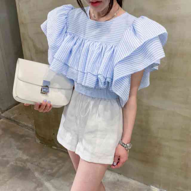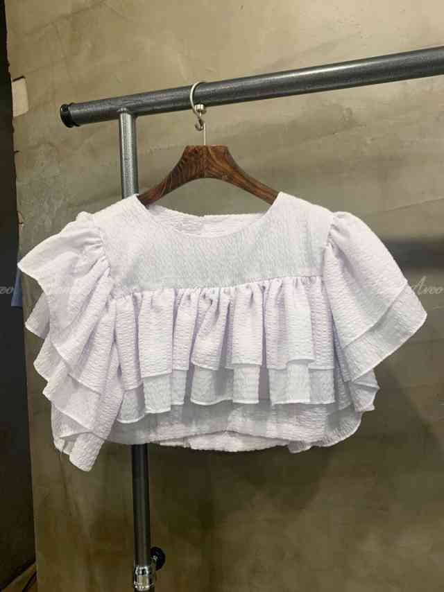 ボリューム感のあるダブルフリルショルダーのフェミニンブラウスです。
