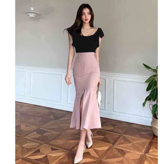 ハイウエストとタイトなシルエットが女性らしいマーメイドスカートです。