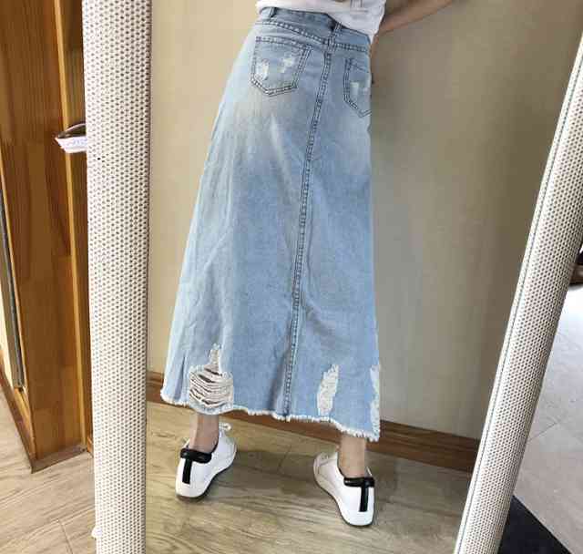 スカート レディース ロング ボトム 大きいサイズ ミモレ ミディアム丈 大人 スカート デニムスカート ペンシルスカート マキシ丈 ビンテージ加工 切りっぱなし カットオフ 体型カバー ゆるい 脚長効果 スリット入り デート お出かけ 婦人服 カジュアル セレカジ 無地 単色