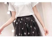 シースルーのお洒落なスカートはウエストゴムなのでラクな着心地です。