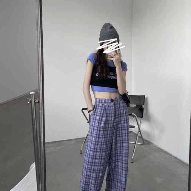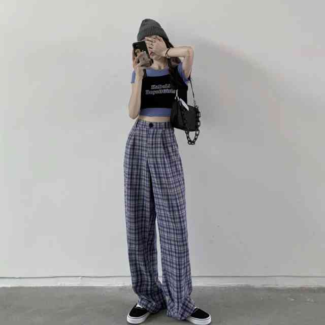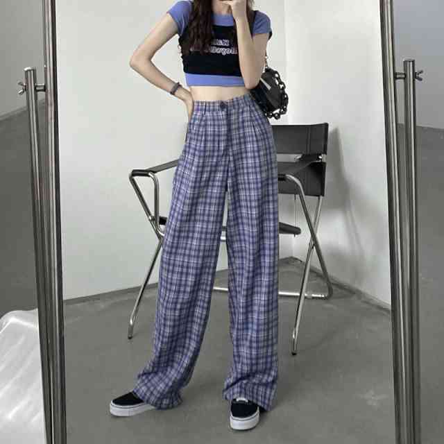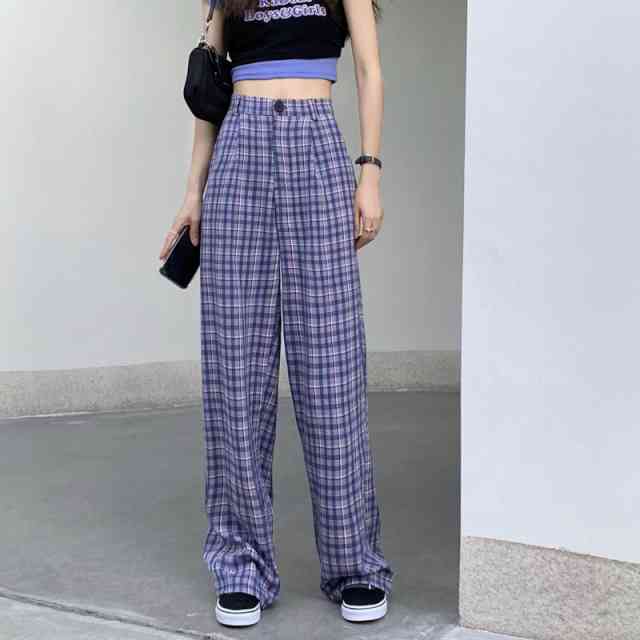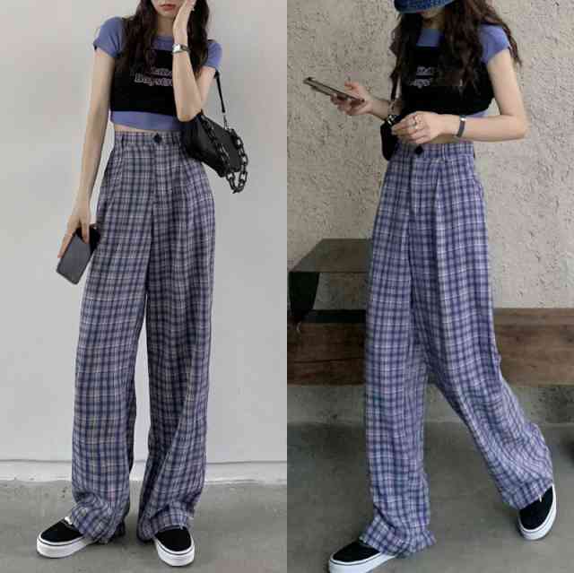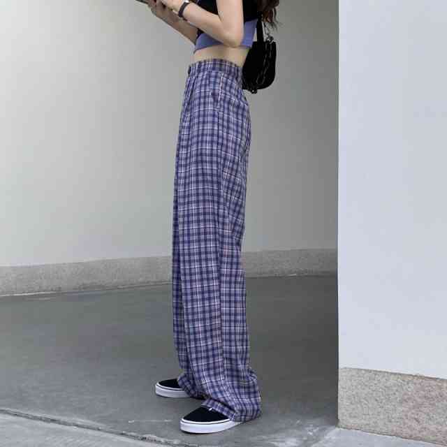 パンツ レディース ガウチョパンツ ボトムス ゆったり ズボン 大きいサイズ ウエストゴム 楽ちん おしゃれロングパンツ レディース ワイドパンツ チェック柄 ルーズ トレンド ラフ ルームウェア 爽やか 個性的 ユニーク お洒落 10代 20代 30代 バイカラー シック 美脚効果
