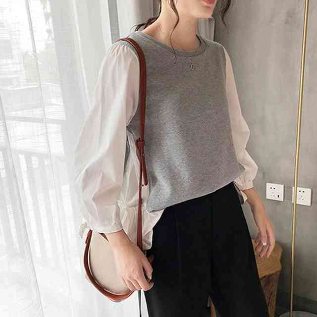 カットソー レディース Tシャツ 長袖 ロンT トップス シンプル 大きいサイズ 春 夏 秋 薄手 ラウンドネック ランタンスリーブ 袖あり 他と被らない 新作 人気 おすすめ SNS映え 着痩効果 エレガント フェミニン カジュアル モノトーン ナチュラル お洒落 ゆったり バイカラー