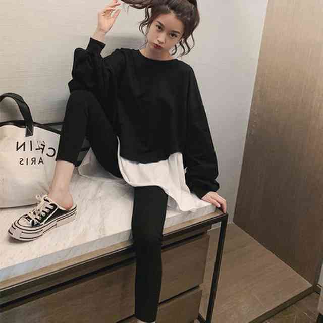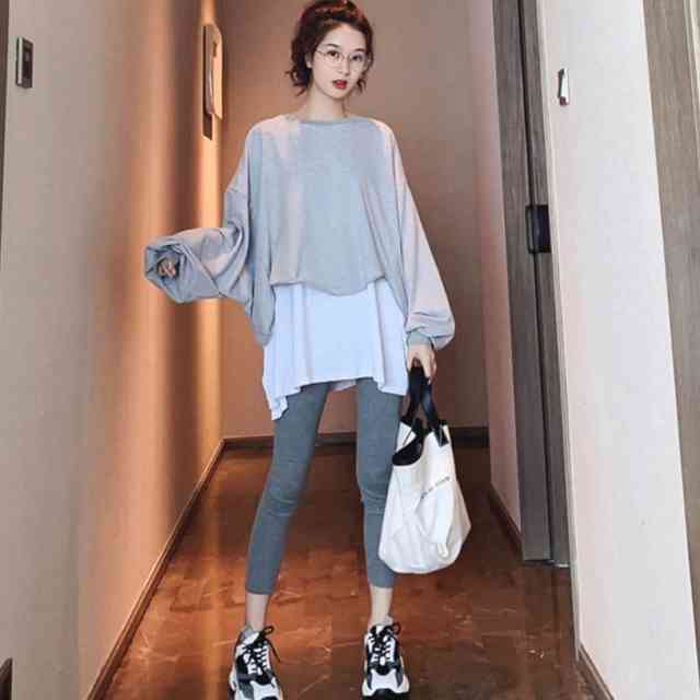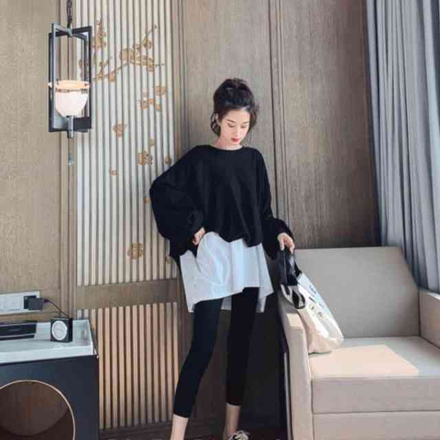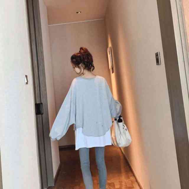 トレーナー トップス レディース スエット長袖 ロンT カットソー トップス シンプル 大きいサイズ 春 秋 冬 ラウンドネック スリット入り 袖あり 他と被らない 新作 レイヤード 重ね着風 SNS映え 着痩効果 エレガント フェミニン カジュアル ゆったり ゆるい おしゃれ きれい
