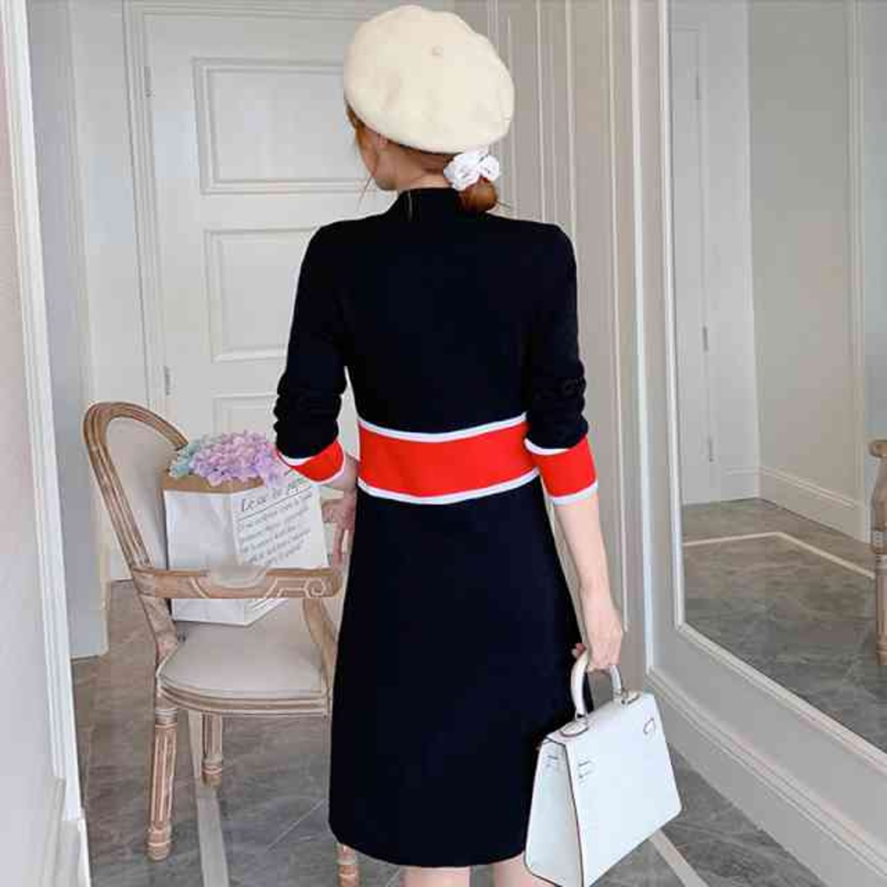 ワンピース レディース ひざ丈 ニット ワンピース ニットワンピ カジュアル 長袖 大きいサイズ 春 夏 秋冬 ワンピ Vネック フロントボタン ウエストマーク 切替え フォーマル パーティー お呼ばれ 結婚式 デート お出かけ トリコロール