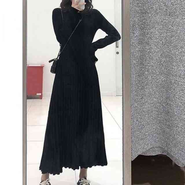 ワンピース レディース ロング丈 ニット ワンピース ニットワンピ カジュアル 長袖 大きいサイズ 春 夏 秋冬 ワンピ マキシ丈 Aライン プリーツ シンプル 切り替え 袖あり 二の腕カバー ゆったり デイリー使い ゆるい 無地 通勤 デート