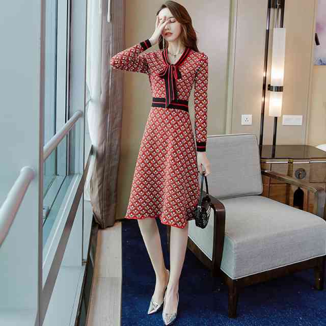 大人可愛いリボンがポイントの、エレガントな女性にピッタリなニットワンピースです。
