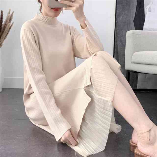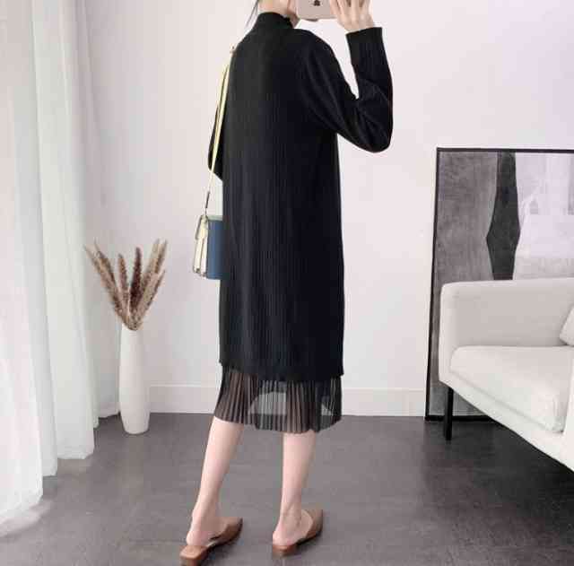 ワンピース レディース ひざ下丈 ニット ワンピース ニットワンピ カジュアル 長袖 大きいサイズ 春 夏 秋冬 ワンピ ミモレ丈 プリーツ シースルー 透け 切り替え フォーマル パーティー お呼ばれ デート お出かけ シンプル 異素材Mix