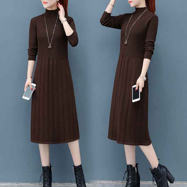 ワンピース レディース 膝丈 ニット ワンピース カジュアル 長袖 大きいサイズ 春 夏 秋冬 ワンピ